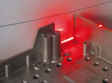Bei der 3D-Kontur.Kontrolle wird wenige Millimeter nach der Dosiernadel die dosierte Raupe beim Dosiervorgang in 3D vermessen und bewertet und kann für den weiteren Verlauf, im geschlossenen Regelkreis, korrigiert werden.